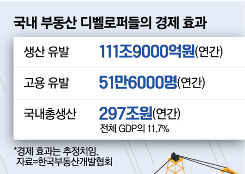 2005년 한국부동산개발협회가 공식 창립한 후 다양한 디벨로퍼가 민간 시장에 뛰어들며 산업 규모는 점점 커졌다. 한국부동산개발협회가 최근 추산한 결과에 따르면 이 업종의 연간 생산 유발 효과는 111조9000억원, 고용 유발 효과는 51만6000명에 달한다.
