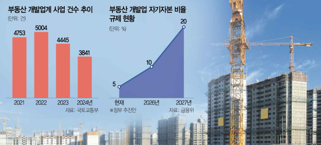 20일 문주현 MDM 회장은 서울 삼성동 그랜드인터컨티넨탈 파르나스에서 열린 한국부동산개발협회 20주년 행사에서 “지금 부동산 개발 업계는 고금리, 공사비, PF 경색, 저성장 등 여러가지로 어려움에 직면했다”며 해외시장 진출 배경에 대해 설명했다. 김한모 HM 회장도 “지금 개발 사업 여건이 좋지 않아 중소형 개발 회사 등은 사업을 영위하기가 더욱 어려운 상황”이라며 “우리나라에서 (과거보다) 디벨로퍼에 더 큰 자기자본을 요구하고 있어 해외시장에 눈을 돌렸다”고 설명했다. 실제 국토교통부의 ‘부동산개발업 등록 현황’ 통계에 따르면 2023년부터 2025년까지 3년 연속 폐업 업체가 신규 등록을 앞서는 등 문을 닫는 디벨로퍼들이 늘어나고 있다. 지난해만 전국에서 부동산 개발 업체 368개가 폐업을 신고했다. 이는 역대 최대 규모다. 사업 건수도 감소하고 있다. 2022년 5004건에 달했던 부동산 개발 업계 사업 건수는 2024년 3841건으로 곤두박질쳤다. 이에 더해 이재명 정부가 한국토지주택공사(LH)가 담당했던 택지 매각 사업을 중단하고 시행 자체를 LH가 전담하라고 지시하면서 국내 부동산 개발 회사들이 사들일 수 있는 땅 자체도 점차 줄어들 것으로 전망된다.