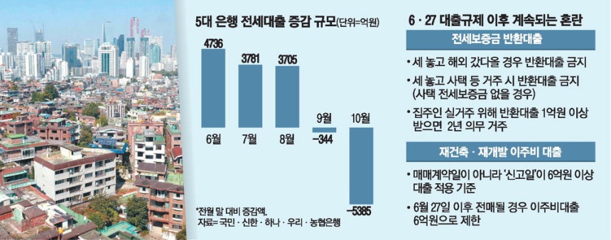 6·27 대출규제가 시행된 지 5개월이 지났지만 현장에서는 여전히 전세보증금 반환대출을 둘러싼 혼선이 심하다. 규제 이전 계약이면 문제가 없을 것이라는 기대와 달리 '1억원 초과' 반환대출을 위해서는 역전세 특례대출 당시의 까다로운 추가 요건까지 충족해야 하기 때문이다.