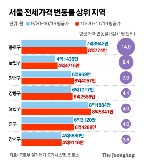 10·15 대책 후 2.8% 뛴 서울 전셋값…노·은·강 서민 타격 컸다
