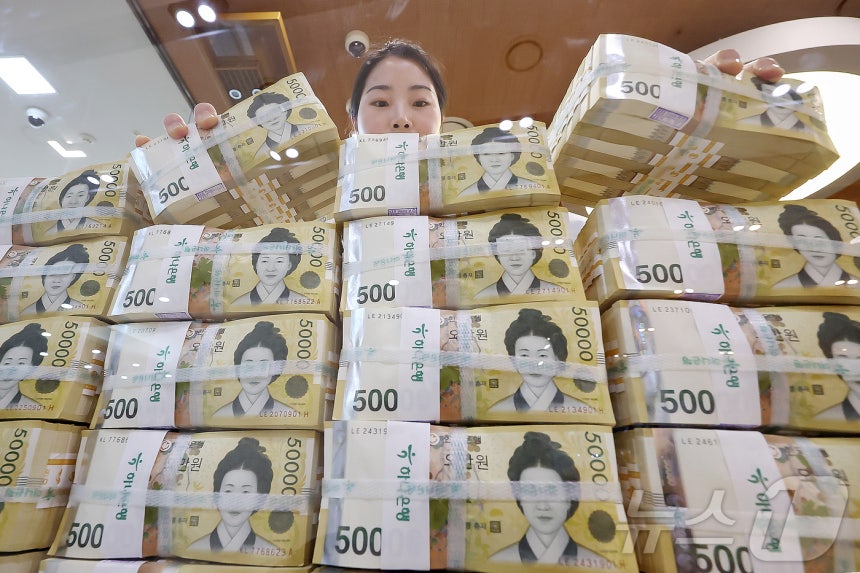 서울 중구 하나은행 위변조대응센터에서 직원이 5만원권을 정리하고 있다. 뉴스1 ⓒ News1 민경석 기자(세종=뉴스1) 조용훈 기자 = 원화 가치가 급락하고 풍부한 유동성이 겹치면서 정부의 고강도 대출 규제에도 서울, 특히 강남 아파트 시장으로 시중 자금이 집중되는 현상이 뚜렷해지고 있다. 전통적 안전자산으로 인식된 강남 아파트가 '자산 피난처'로 굳어지면서, 자산 양극화와 가격 불안 우려도 다시 고개를 들고 있다.'원화 약세→부동산 선호 강화'…핵심 단지·재건축 등 매입26일 한국은행·부동산R114 등에 따르면, 10월 말 실질실효환율은 금융위기 이후 최저 수준으로 떨어지며 원화의 실질 구매력 약화에 대한 불안이 커졌다. 실질 원화가 저평가 구간에 머무는 사이, 예금·채권보다 인플레이션 방어력이 높은 실물자산을 찾는 수요가 서울 핵심지 강남권 아파트에 몰리면서 '원화 약세→부동산 선호 강화' 고리가 형성됐다는 분석이다.