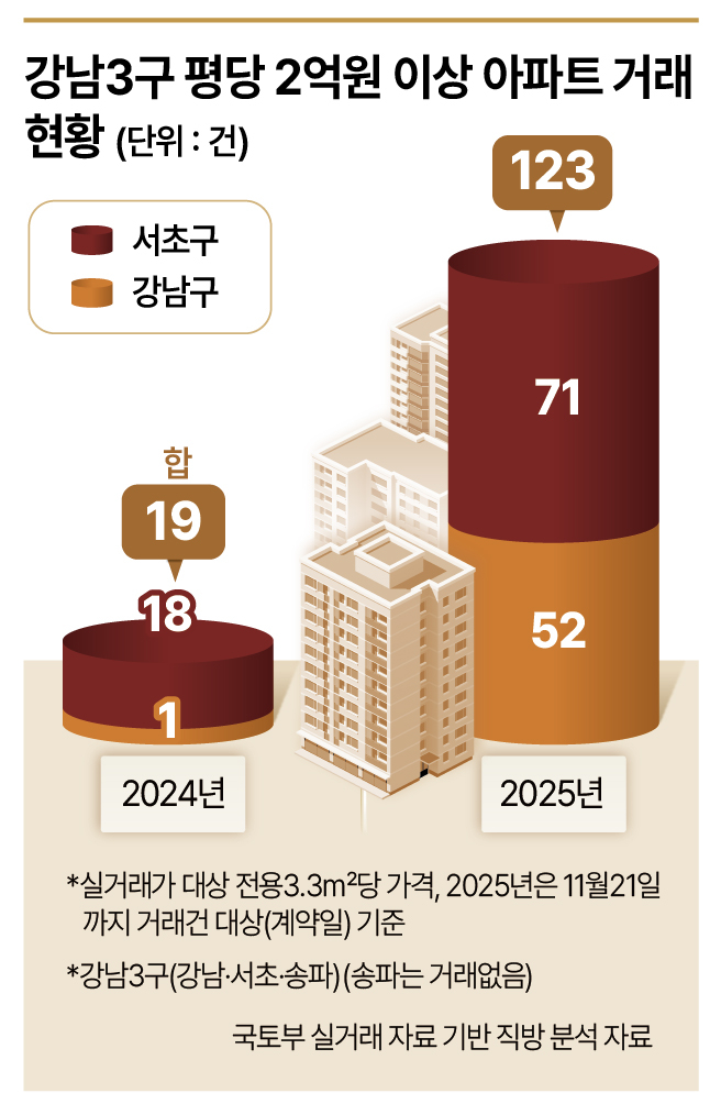 ‘평당 2억 거래’ 2024년 19건→올해 6배 수준 급증