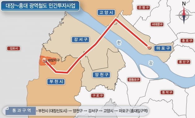 대장홍대선 노선도. 한경DB경기 부천 대장신도시와 서울 홍대입구역을 잇는 ‘대장홍대선’이 본격적인 착공에 들어간다. 수도권 서부 교통 사각지대를 해소하고 출퇴근 시간을 대폭 단축할 것이란 기대감이 크다. 국내 최초로 BTO(수익형 민자사업)와 BTL(임대형 민자사업)을 결합한 '혼합형 민자철도' 방식으로 개발되는 구간으로, 최근 1조9000억원 규모 PF(프로젝트 파이낸싱)도 성공적으로 마무리하며 2031년 개통까지 사업이 속도를 낼 전망이다.
