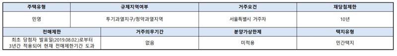 자료 : 청약홈 분양가는 부대경비를 포함해 각각 각각 10억4120만원, 10억5640만원이다. 분양 당시 가격이다. 납부일정을 보면 계약금 10%, 중도금 60%, 잔금 30% 등이다. 청약자격은 서울에 거주하는 무주택 세대주이다.