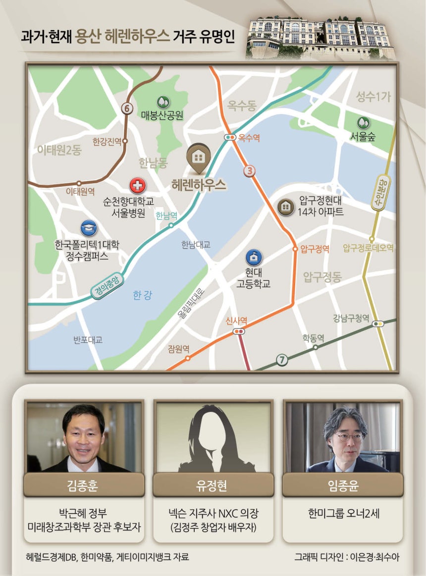고급스러운 단독주택들 사이에서도 유달리 유럽의 한 도시에 와 있는 듯한 느낌을 주는 이곳은 서울 용산구 한남동 내에서도 유독 기업인이 많이 사는 곳으로 꼽힌다. 단 16세대를 위한 3개 동으로 구성된 이 연립주택에는 고 김정주 넥슨 창업자의 배우자인 유정현 넥슨 지주사 NXC 의장을 비롯해 이범 에스콰이아 전 회장, 임종윤 한미그룹 오너2세 등이 살고 있다. 이곳은 바로 헤렌하우스다.