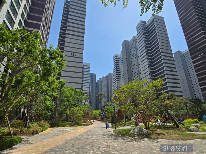 서울 강동구 둔촌동 '올림픽파크포레온' 내의 조경이 잘 꾸며져 있다. 사진=이송렬 기자.그러면서 "당분간은 매물이 나올 이유가 없다"면서 "다만 내년 중순 이후부터는 조합원이나 일반분양을 받는 실수요자들이 매물을 내놓을 것으로 예상한다. 해당 시점 전까진 가격이 강세를 보일 것"이라고 설명했다.