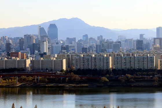 4일 서울 성동구 응봉산에서 강남권 아파트 단지 등이 보이고 있다. 뉴스1 서울 강남구 압구정동 ‘미성2차’ 아파트 전용면적 74㎡는 지난 3월 24일 강남3구(강남·서초·송파)·용산구가 토지거래허가구역으로 지정된 후 지난달까지 8개월 간 신고가를 12차례 갈아치웠다. 3월 41억원에 거래되던 매매가격은 11월 50억원으로 9억원이나 뛰었다. 갭투자(전세 낀 매매)가 차단되고, 실거주 의무가 생기는 등 가장 강력한 규제로 꼽히는 토지거래허가제도 강남에선 작동하지 않고 있다는 걸 보여주는 단적인 예다. 토허제로 매물이 줄면서 매매가격이 오히려 오르고 있어서다.