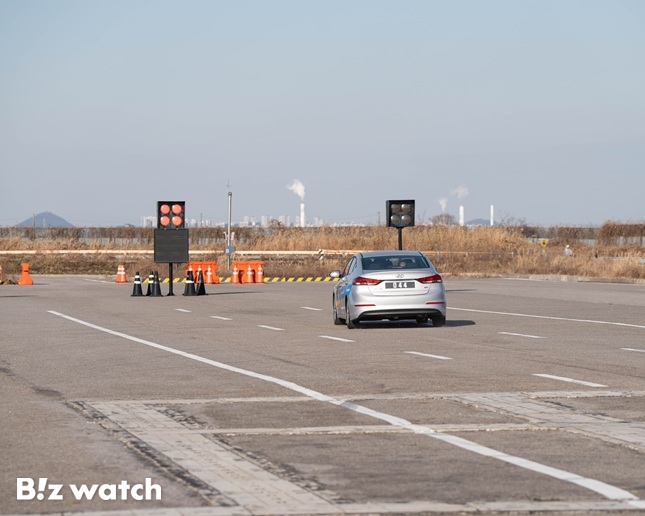 체험 코스는 화성교통안전체험교육센터 내 직선제동코스에서 진행됐다. 직선거리 200~300m가량을 달리다 제동하는 코스다.