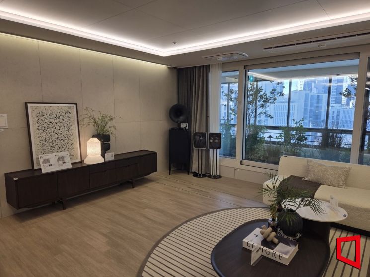 역삼센트럴자이 전용면적 122㎡ 거실 모습. 이정윤 기자