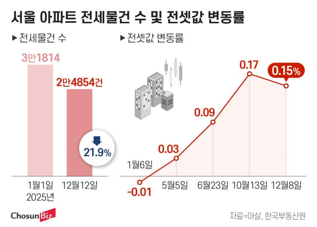서울 전셋집 찾기 ‘하늘의 별따기’... 매물 22% 줄고, 가격 45주째 상승