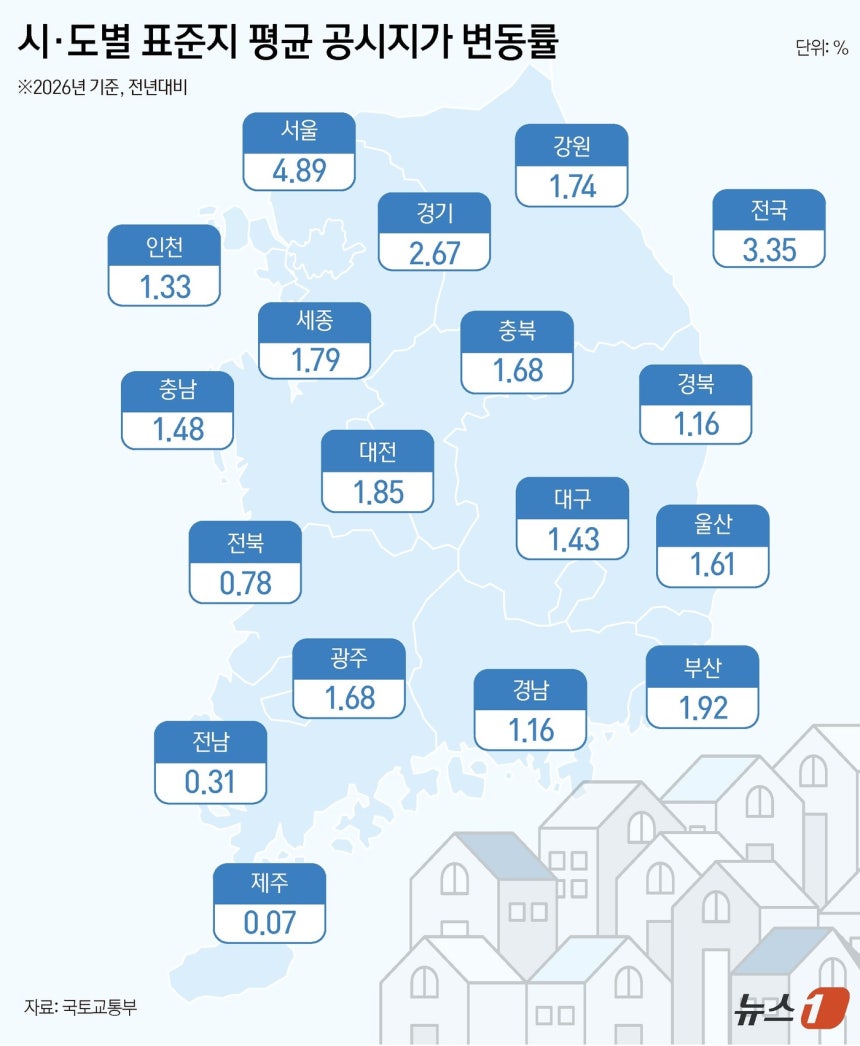 소유자 및 지자체의 의견청취절차가 마무리된 2026년 표준지 공시지가(안)과 표준주택 공시가격(안)은 중앙부동산가격공시위원회 심의를 거쳐 다음 달 23일 관보에 공시할 예정이다.