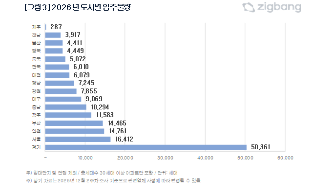 2026년 도시별 입주물량. [직방 제공]