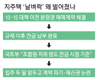 서울 동작구의 지역주택조합에서 10·15 대책 시행 이전에 분양권 매매 계약을 체결했는데도, 조합원 지위 양도가 허용되지 않아 계약이 파기될 위기에 놓인 사례가 잇따르면서 혼란이 커지고 있다.
