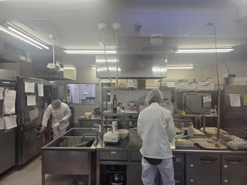 일본 모리노이에 나리타의 내부 모습. 누구나 주방에서 음식이 만들어지는 과정을 확인할 수 있다.모리노이에 나리타에 상주하는 간호사가 있고, 응급 상황시 바로 이송 가능한 병원이 마련돼 있다. 직원은 간호사를 포함해 20여 명으로, 평균 연령이 30대다. 이날 시설을 관리하는 매니저 역시 26살이었다. 매니저는 “노인을 옮기고 씻기는 데 많은 힘이 들기 때문에 젊은 직원들 중심으로 운영되고 있다”고 말했다.