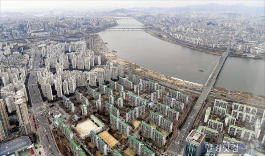 서울 송파구 잠실 롯데타워에서 바라본 잠실역 일대. 잠실대교(오른쪽에 있는 다리) 왼쪽이 잠실주공5단지, 오른쪽이 장미아파트다. /사진=한경DB서울에서 준공한 지 50년 가까이 된 노후 아파트가 40억원을 훌쩍 넘는 가격에 거래됐습니다. 재건축 사업을 추진하는 한강 변 노후 아파트들의 인기가 높아지면서 '돈이 있어도 매물을 구하지 못한다'는 푸념이 나옵니다.