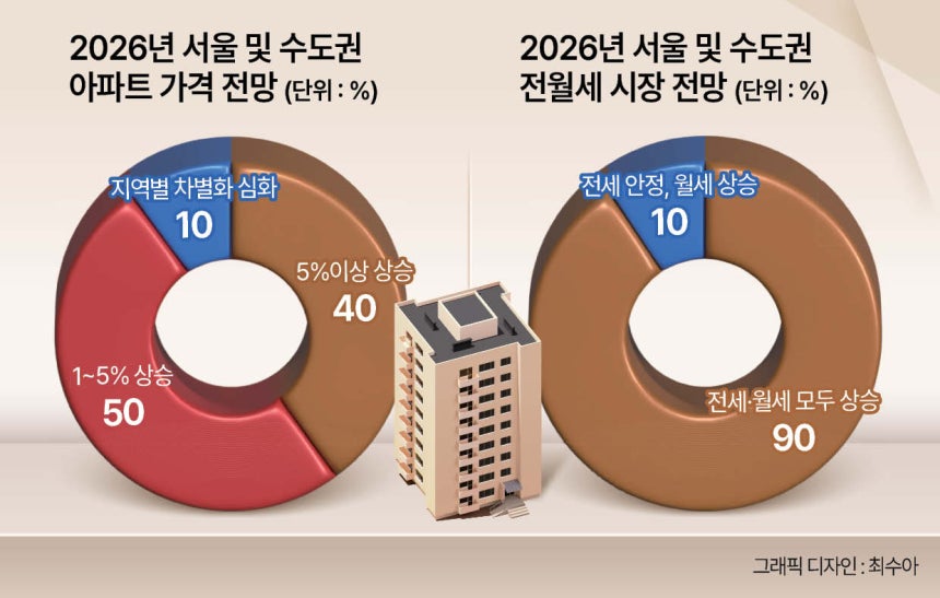 헤럴드경제가 2026년 새해를 맞아 국내 부동산 전문가 10명을 대상으로 설문조사를 실시한 결과, 전원이 내년 서울 및 수도권 집값이 오를 것이라고 봤다. 특히 이 중 8명은 연중 내내 집값이 꺾이지 않고 지속 상승할 것으로 답했다.