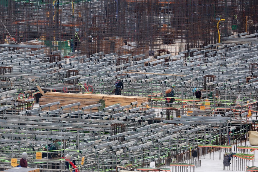 서울 시내 한 아파트 건설 현장에서 작업자들이 작업을 하고 있다.[연합]