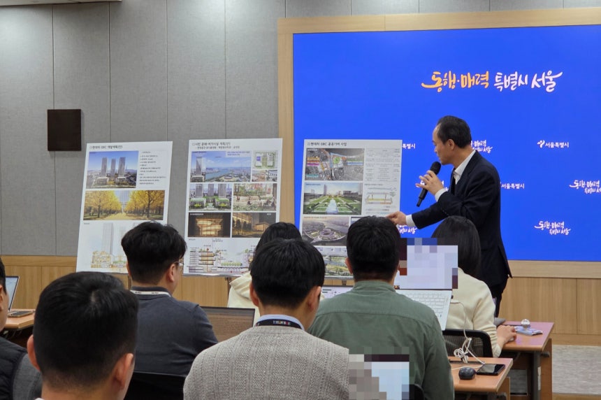 현대자동차그룹 글로벌비즈니스콤플렉스(GBC) 사업이 서울시와의 최종 합의로 본격 추진된다. 사진은 김창규 서울시 균형발전본부장이 브리핑하는 모습. 사진=이화랑 기자 총 5조원에 달하는 서울 삼성동의 현대자동차그룹 글로벌비즈니스콤플렉스(GBC) 개발사업이 2031년 준공을 목표로 본격화된다. 사업 규모는 당초 105층 초고층 랜드마크에서 49층 타워 3개 동으로 변경됐다.